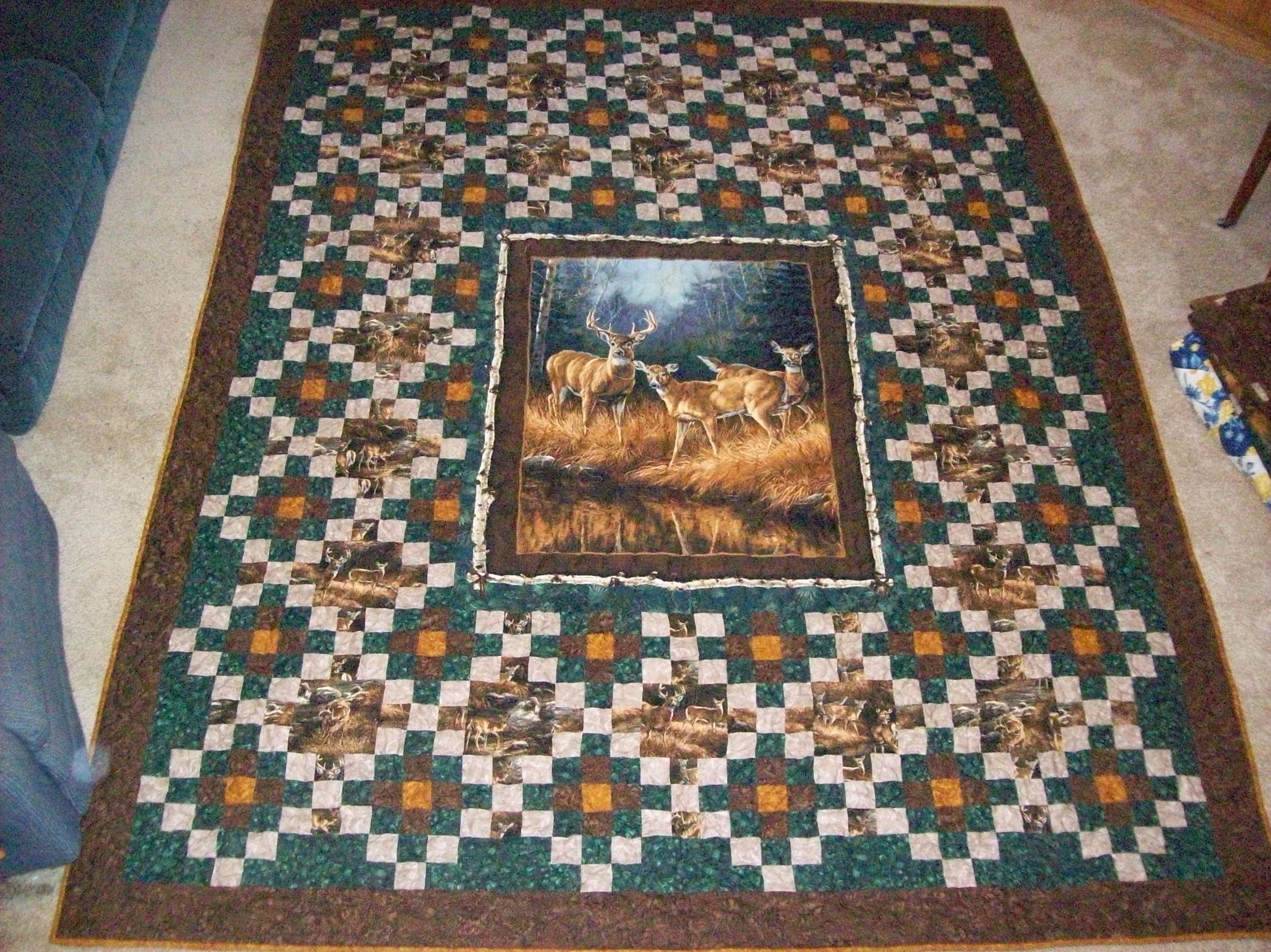 Unknown Intruder: Made with 100% cotton fabrics in neutral tones, featuring the Unknown Intruder panel and coordinating fabrics from the Unknown Intruder line. Machine pieced and machine quilted for maximum durability. Measures 80"x100". Machine wash and dry. ***SOLD***